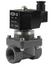 Клапан электромагнитный соленоидный двухходовой DN.ru-DHF21-UP (НЗ) Ду15 (1/2 дюйм) Ру6 корпус - НПВХ с антикоррозийным покрытием, уплотнение - VITON, резьба G, с катушкой 24В с сертификатами качества. Доставка. Гарантия. В наличии! Звоните!