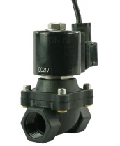Клапан электромагнитный соленоидный двухходовой прямого действия DN.ru-DHDF11-P (НЗ) погружной фонтанный, быстрого реагирования Ду25 (1 дюйм), Ру6 корпус - пластик PA66, уплотнение - NBR, с катушкой серии F 24В
