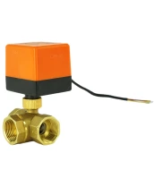 Кран шаровой DN.ru BV0030NP-SP-3T-T-ED Ду25 Ру16 стандартнопроходной, T-тип, трехходовой, латунь, внутренняя резьба, уплотнение - нитриловый каучук / PTFE, с электроприводом 220В без концевых выключателей