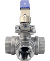 Кран шаровой DN.RU BV3232P(4pc)-SP-3WL-T-ISO-H Ду25 Ру63, 3-ходовой L-тип стандартнопроходной, внутренняя резьба, уплотнение - PTFE, материал корпуса - нержавеющая сталь SS316 с ISO фланцем и рукояткой Казань