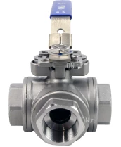 Кран шаровой DN.RU BV3232P(4pc)-SP-3WL-T-ISO-H Ду32 Ру63, 3-ходовой L-тип стандартнопроходной, внутренняя резьба, уплотнение - PTFE, материал корпуса - нержавеющая сталь SS316 с ISO фланцем и рукояткой Казань