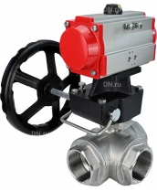 Кран шаровой DN.ru BV3232P(4pc)-SP-3WL-T-ISO-H Ду65 Ру40 стандартнопроходной трехходовой L-тип, нерж. сталь SS316, внутренняя резьба, уплотнение - PTFE, с пневмоприводом PA-DA-083 и ручным дублером MON2-450-T28-ISO с сертификатами качества. Доставка. Гарантия. В наличии! Звоните!