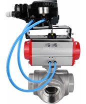 Кран шаровой DN.ru BV3232P(4pc)-SP-3WL-T-ISO-H Ду20 Ру63 стандартнопроходной 3-ходовой, L-тип, нерж. сталь SS316, внутренняя резьба, PTFE, с пн.приводом DN.ru PA-DA-052 двойного действия и электропневматич. позиционером DN.ru YT-1000RSN без обратной связи с сертификатами качества. Доставка. Гарантия. В наличии! Звоните!