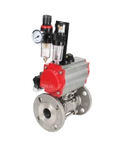 Кран шаровой DN.ru BV3131P(3pc)-FP-F-ISO-H Ду32 Ру40, трехсоставной полнопроходной фланцевый, нержавеющая сталь SS304, уплотнение - PTFE, с пневмоприводом PA-DA-052 двойного действия, с пневмораспределителем 4М310-08 220В NAMUR, с БПВ AFC2000 с сертификатами качества. Доставка. Гарантия. В наличии! Звоните!