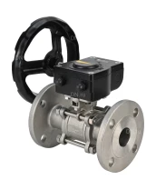 Кран шаровой DN.ru BV3131P(3pc)-FP-F-ISO-H Ду32 Ру40 трехсоставной из нержавеющей стали SS304, фланцевый, уплотнение - PTFE, полнопроходной с ISO-фланцем и редуктором DN.ru HAM RQN1-180Z-T40 Казань