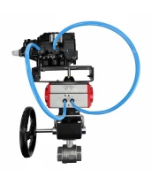 Кран шаровой DN.ru BV3232P(2pc)-FP-T-ISO-H Ду40 Ру63 полнопроходной, нерж. сталь SS316, внутренняя резьба, PTFE, с пневмоприводом PA-DA-083, ручным дублером MON2-450-T28-ISO и с эл.пневматич. поворотным позиционером YT-1000RSN без обратной связи с сертификатами качества. Доставка. Гарантия. В наличии! Звоните!