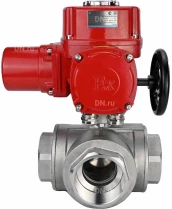 Кран шаровой DN.ru BV3232P(4pc)-SP-3WL-T-ISO-H Ду32 Ру63 стандартнопроходной трехходовой L-тип, нержавеющая сталь SS316, внутренняя резьба, уплотнение - PTFE, с 1/4-оборотным электроприводом DN.ru QT-EX-005M-O2-220VAC-У1 с сертификатами качества. Доставка. Гарантия. В наличии! Звоните!