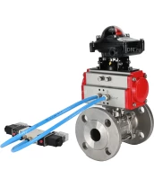 Кран шаровой DN.ru BV3232P(3pc)-FP-F-ISO-H Ду80 Ру25, трехсоставной полнопроходной фланцевый, нержавеющая сталь SS316, уплотнение - PTFE, с пневмоприводом PA-DA-105 двойного действия, с пневмораспределителем 4V320-08 220В, с БКВ APL-210N с сертификатами качества. Доставка. Гарантия. В наличии! Звоните!