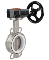 Затвор дисковый поворотный DN.ru 316L-316L-PTFE Ду125 Ру16 межфланцевый, корпус - нержавеющая сталь 316L, диск - нержавеющая сталь 316L, уплотнение - PTFE, с редуктором Pro-Gear X-21-W-200 Казань